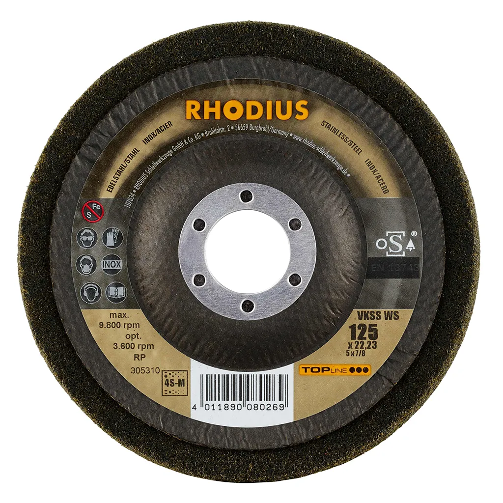 Avec le disque compact en non-tissé VKSG WS (et VKSS WS, modèle incliné), l’utilisateur est assuré d’acquérir le meilleur outil RHODIUS de sa catégorie. Les produits TOPline de RHODIUS sont la garantie de performances et d’une qualité maximales.