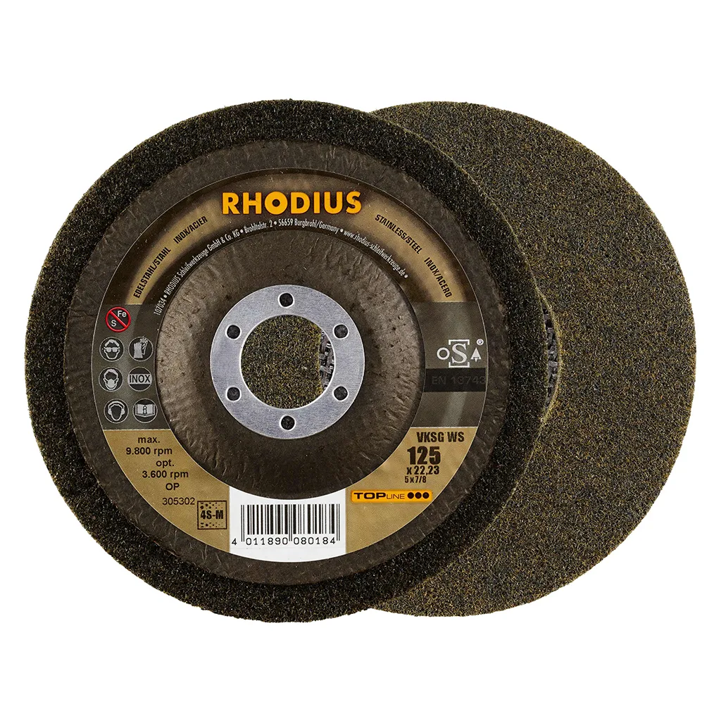 Avec le disque compact en non-tissé VKSG WS (et VKSS WS, modèle incliné), l’utilisateur est assuré d’acquérir le meilleur outil RHODIUS de sa catégorie. Les produits TOPline de RHODIUS sont la garantie de performances et d’une qualité maximales.