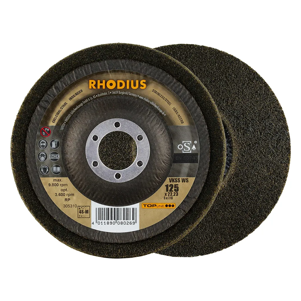 Avec le disque compact en non-tissé VKSG WS (et VKSS WS, modèle incliné), l’utilisateur est assuré d’acquérir le meilleur outil RHODIUS de sa catégorie. Les produits TOPline de RHODIUS sont la garantie de performances et d’une qualité maximales.