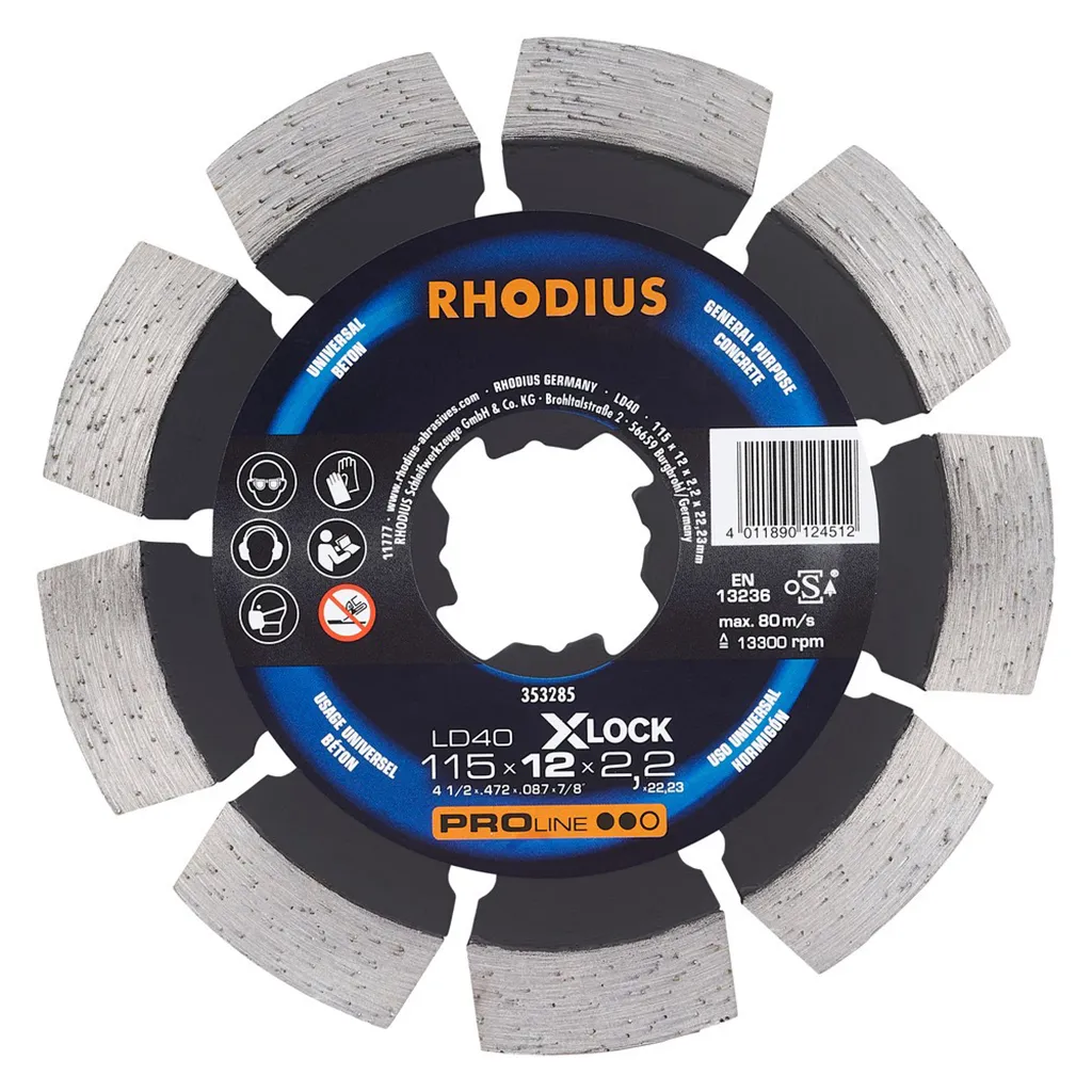 Ces disques de tronçonnage diamant sont disponibles dans des diamètres de 115 et 125 mm. Les disques X-LOCK de RHODIUS dans les diamètres de 115 et 125 mm ont été conçus pour les meuleuses d’angle de nombreux fabricants. Tous les disques RHODIUS pour X-LOCK sont, en outre, compatibles avec les modèles antérieurs, ce qui signifie qu’ils peuvent également être utilisés sur une meuleuse d’angle traditionnelle avec logement pour alésage de 22,23.