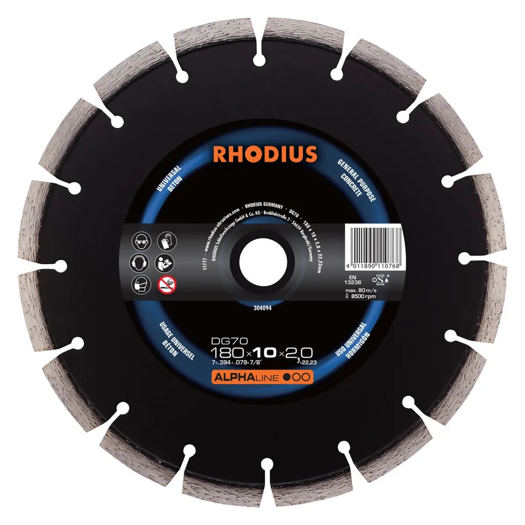 Le DG70 a été développé tout spécialement pour le traitement du béton et des klinkers. Cet outil de qualité RHODIUS convient en outre très bien pour le traitement de la pierre dure et des dalles de ciment, ainsi que des tubes en béton et pierres de bordure.
