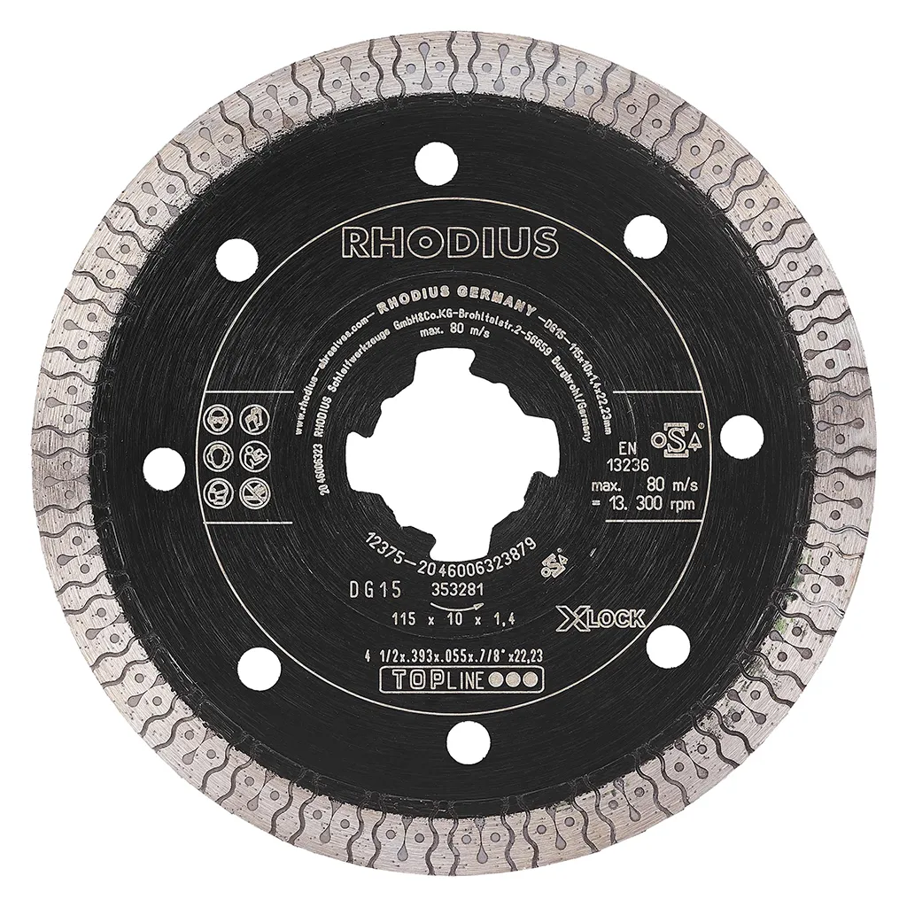 Le DG15 X-LOCK a été développé tout spécialement pour le traitement des carrelages cuits à haute température. Cet outil de qualité de RHODIUS convient également très bien pour le traitement de la porcelaine, du granit, des carrelages émaillés et du marbre.