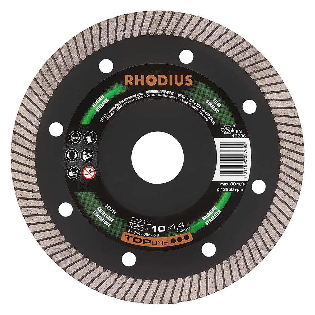 Le DG10 a été développé tout spécialement pour le traitement de la porcelaine, de la céramique ou grès cérame fin et des carrelages émaillés. Cet outil de qualité de RHODIUS convient également très bien pour le traitement du granit, des carrelages cuits à haute température et du marbre.