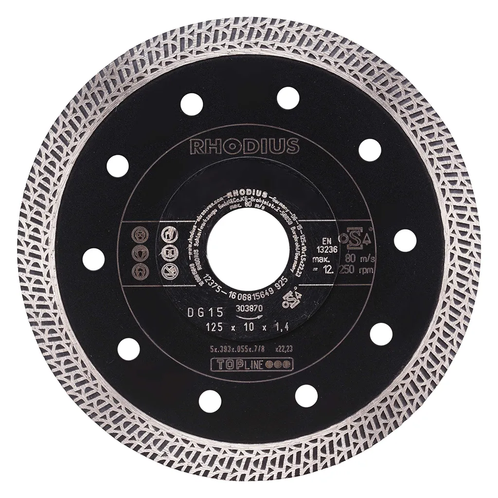 Le DG15 a été développé tout spécialement pour le traitement des carrelages cuits à haute température. Cet outil de qualité de RHODIUS convient également très bien pour le traitement de la porcelaine, du granit, des carrelages émaillés et du marbre.
