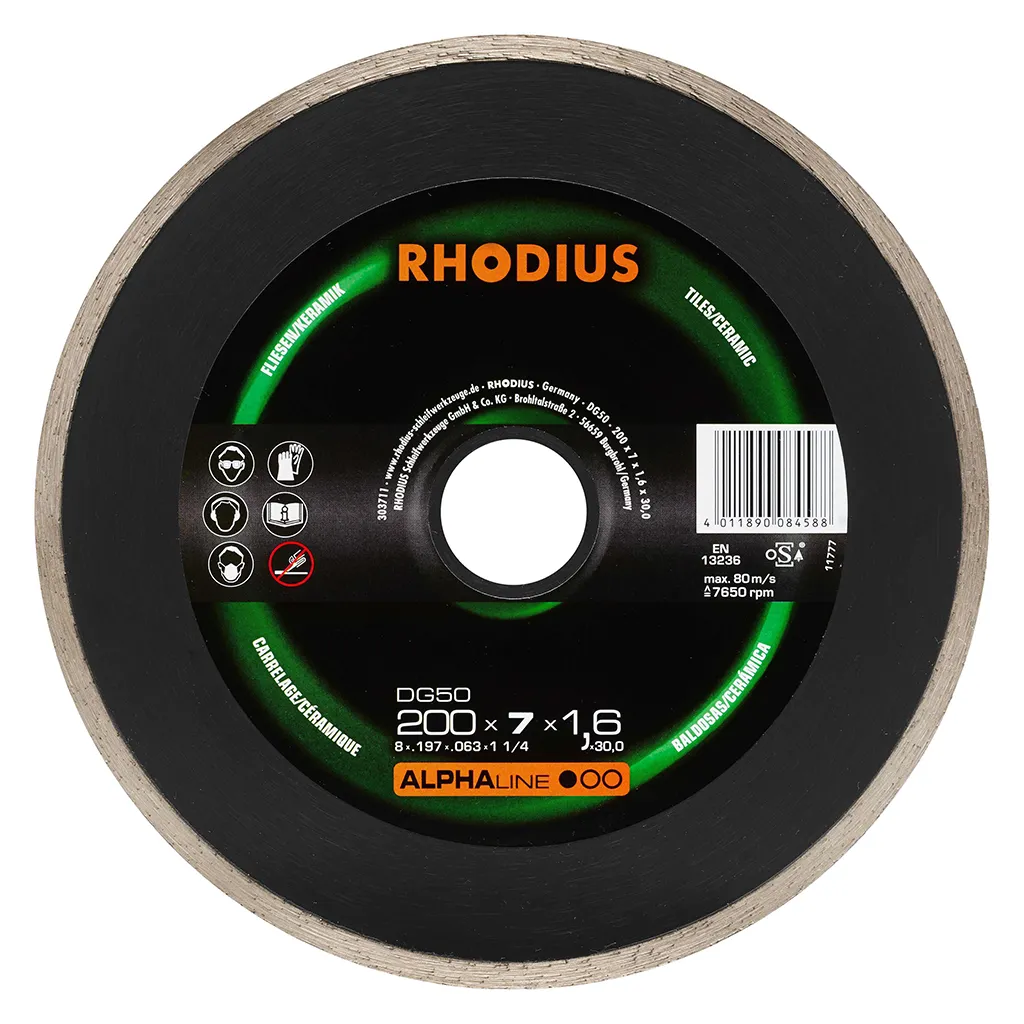 Le DG50 est doté d’un bord de coupe fermé pour des coupes précises et des arêtes de coupe nettes. Cet outil a été contrôlé conformément aux normes EN13236 et oSA et peut être utilisé tant à sec que pour des coupes humides. Grâce à son diamant industriel de qualité, le DG50 est particulièrement performant. Ce disque est directement fritté.