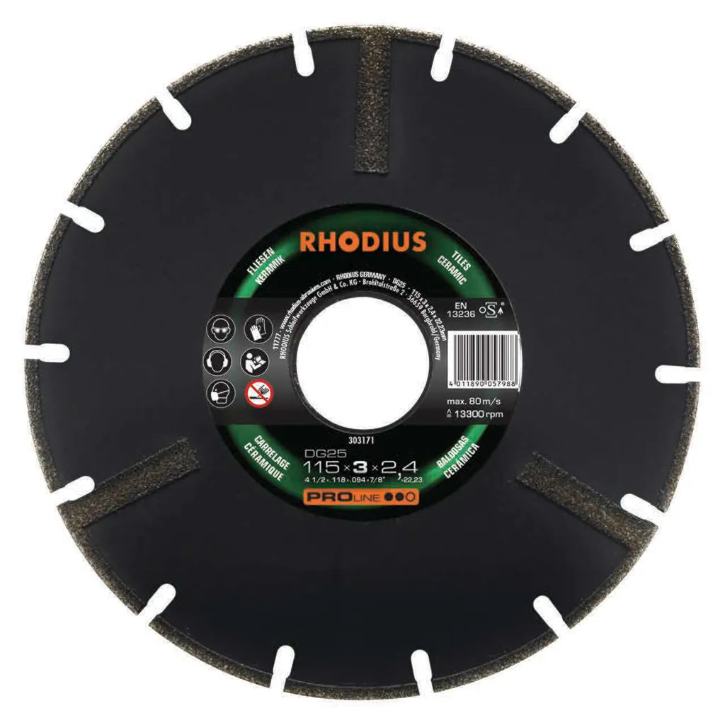 Le DG25 a été développé tout spécialement pour le traitement du marbre. Cet outil de qualité de RHODIUS convient également très bien pour le traitement des carrelages émaillés.