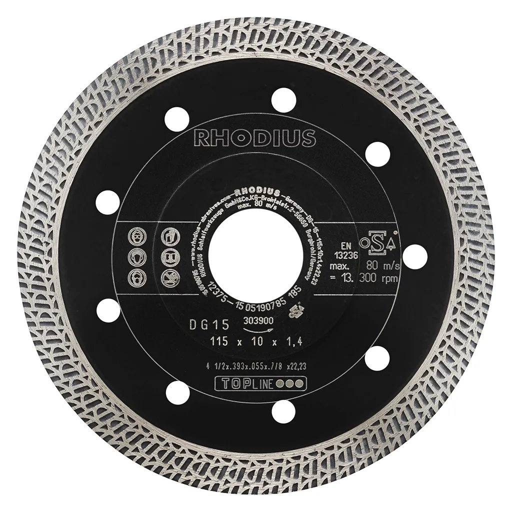 Le DG15 a été développé tout spécialement pour le traitement des carrelages cuits à haute température. Cet outil de qualité de RHODIUS convient également très bien pour le traitement de la porcelaine, du granit, des carrelages émaillés et du marbre.