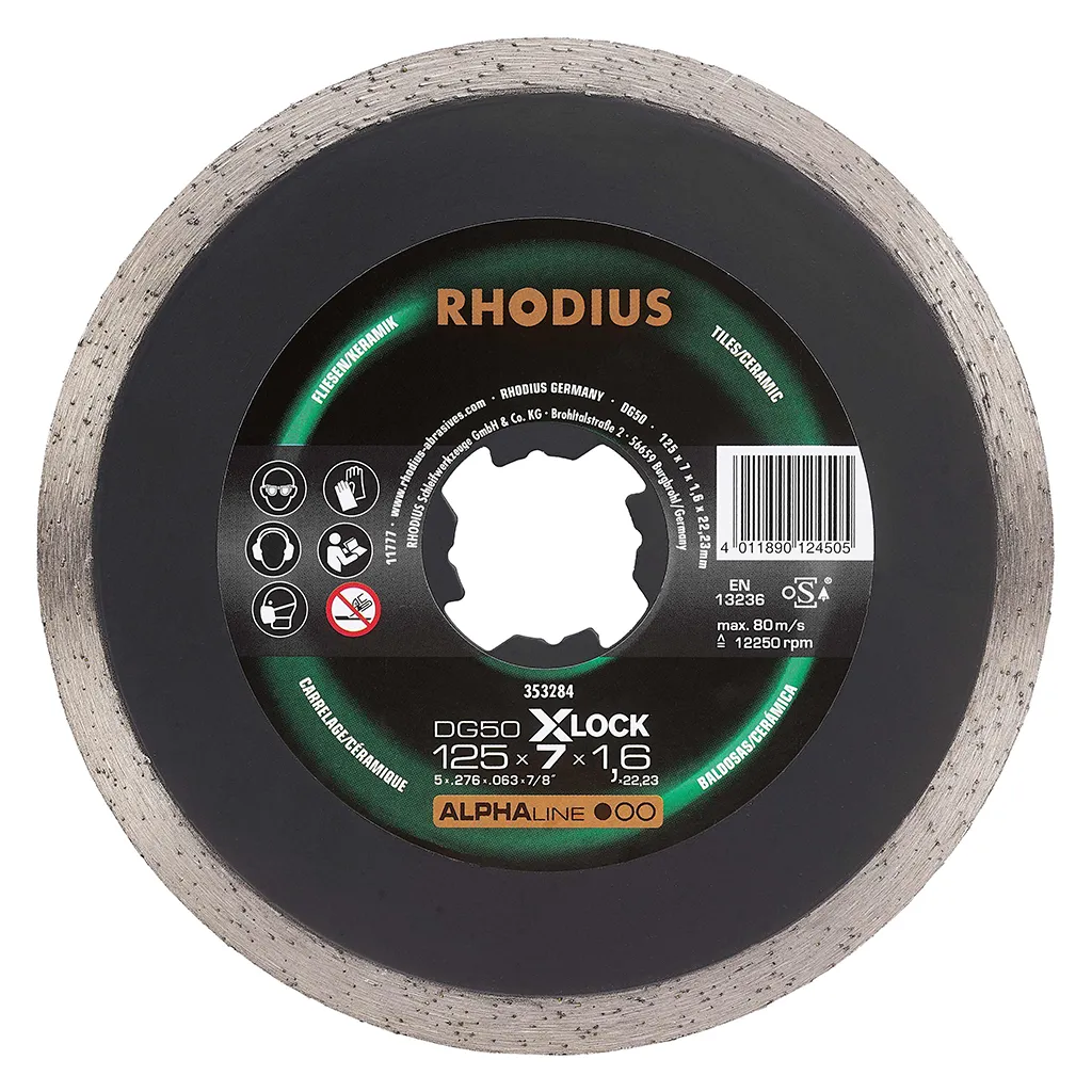 Le DG50 X-LOCK est doté d’un bord de coupe segmenté pour des coupes précises et des arêtes de coupe nettes. Cet outil a été contrôlé conformément aux normes EN13236 et oSA et peut être utilisé tant à sec que pour des coupes humides. Grâce à son diamant industriel de qualité, le DG50 X-LOCK est particulièrement performant. Ce disque est directement fritté.
