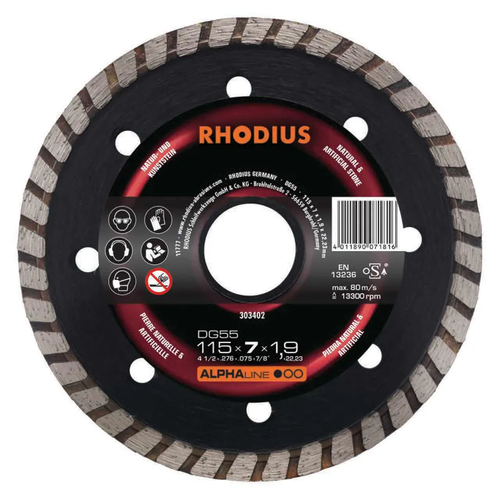 Le DG55 est doté d’un bord de coupe fermé pour des coupes précises et des arêtes de coupe nettes. Cet outil a été contrôlé conformément aux normes EN13236 et oSA et peut être utilisé tant à sec que pour des coupes humides. Grâce à son diamant industriel de qualité, le DG55 est particulièrement performant. Ce disque est directement fritté.