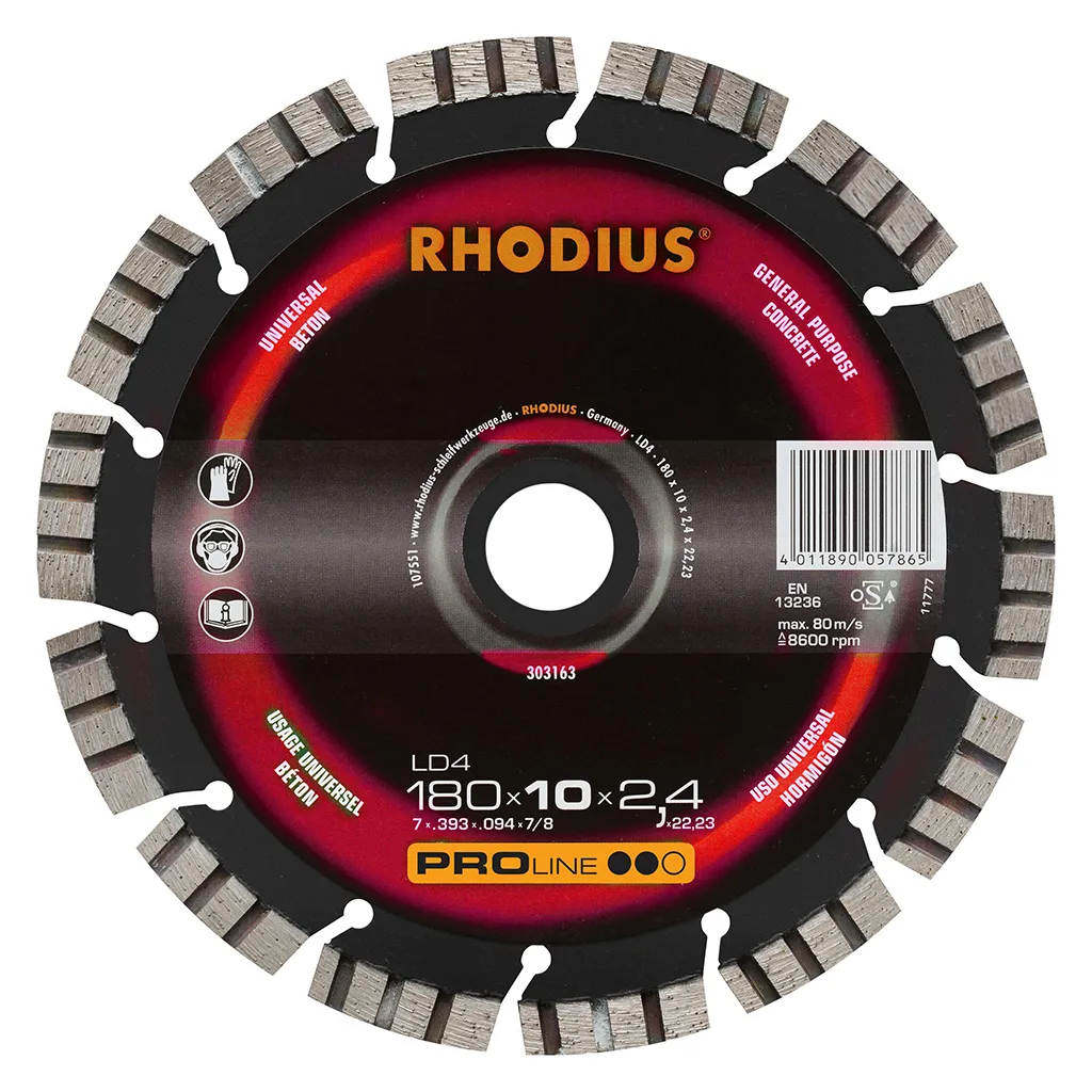 Le LD4 est doté d’un bord de coupe segmenté. Il atteint ainsi une vitesse de coupe très élevée avec une durée de vie maximale. Cet outil a été contrôlé conformément aux normes EN13236 et oSA et peut être utilisé tant à sec que pour des coupes humides. Grâce à son diamant industriel de qualité, le LD4 est particulièrement performant. Ce disque est en outre soudé au laser.