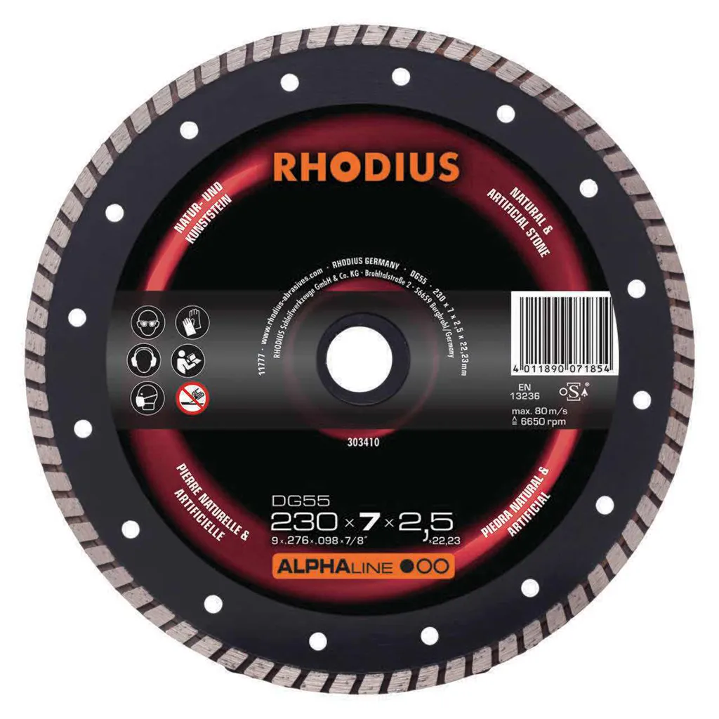 Le DG55 est doté d’un bord de coupe fermé pour des coupes précises et des arêtes de coupe nettes. Cet outil a été contrôlé conformément aux normes EN13236 et oSA et peut être utilisé tant à sec que pour des coupes humides. Grâce à son diamant industriel de qualité, le DG55 est particulièrement performant. Ce disque est directement fritté.