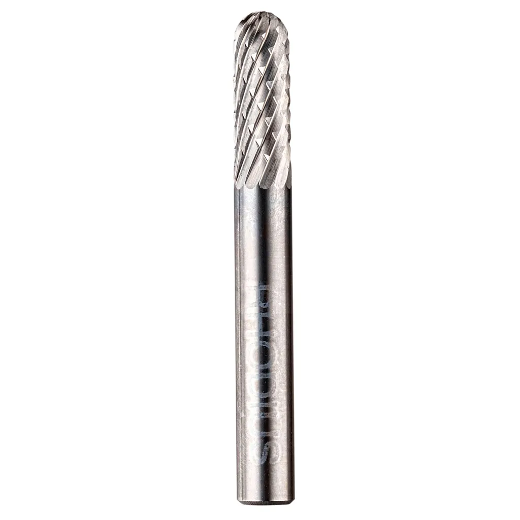 Les fraises de forme C (cylindrique à bout arrondi) conformes à la norme DIN 8032 sont disponibles dans des diamètres de tête de 6 à 12,7 mm. Le diamètre de la tige est de 6 mm.