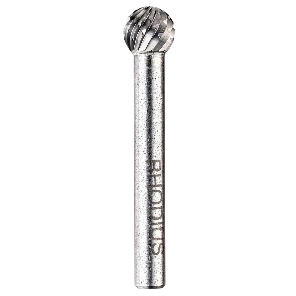 Les fraises de forme D (sphère) conformes à la norme DIN 8032 sont disponibles dans des diamètres de tête de 6 à 12,7 mm. Le diamètre de la tige est de 6 mm.