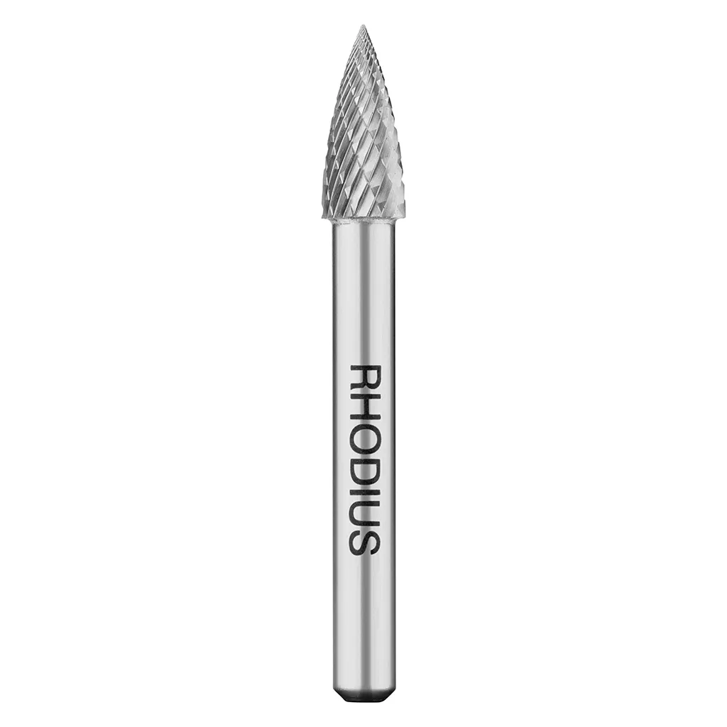 Les fraises de forme G (ogive) conformes à la norme DIN 8032 sont disponibles dans des diamètres de tête de 6 à 16 mm. Le diamètre de la tige est de 3 ou 6 mm.