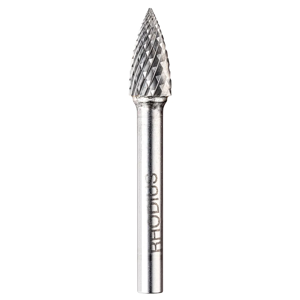 Les fraises de forme G (ogive) conformes à la norme DIN 8032 sont disponibles dans des diamètres de tête de 8 à 12,7 mm. Le diamètre de la tige est de 6 mm.