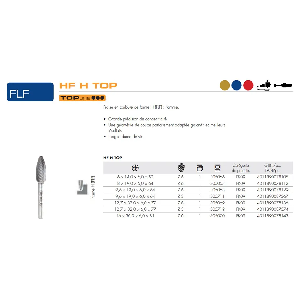 Fraise en carbure de forme H (FLF) : flamme.