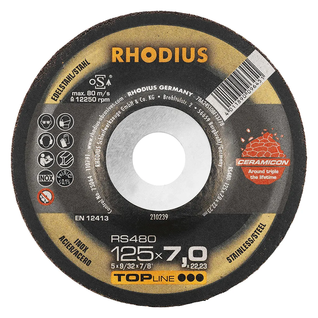 Nos disques de tronçonnage, meules à ébarber et disques à lamelles à grain abrasif céramique et liant parfaitement adapté sont extrêmement agressifs. Ils garantissent une plus grande productivité. Lorsque des résultats parfaits doivent être obtenus le plus rapidement possible, impossible de passer à côté du RHODIUS CERAMICON. Le grain céramique est auto-affûtant et ne se brise pas prématurément, gagnant en efficacité. Un facteur qui augmente nettement la durée de vie.