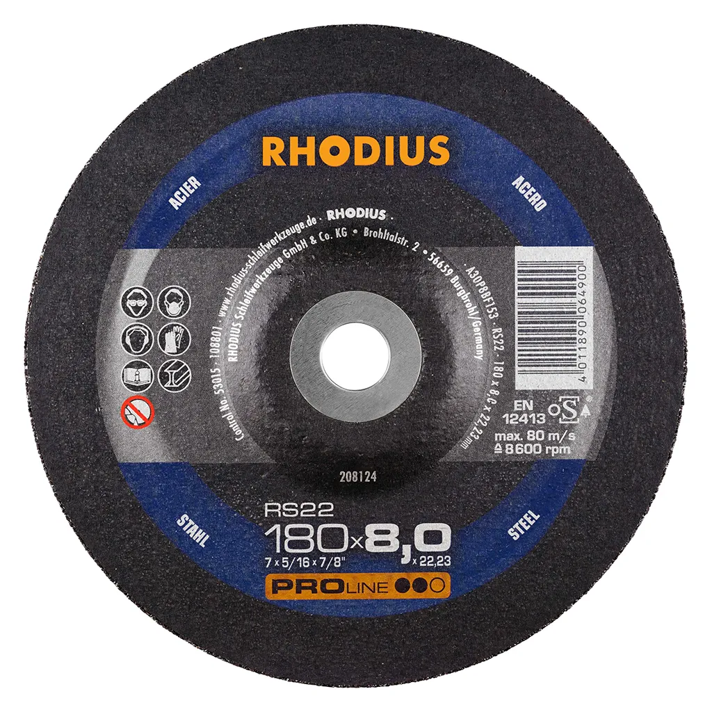 Les meules à ébarber RS22 d’une épaisseur de 8,0 mm sont disponibles dans des diamètres de 180 et 230 mm.