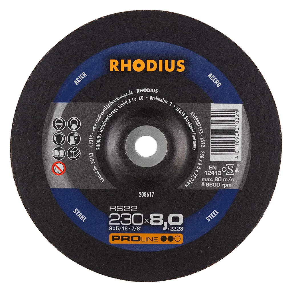 Les meules à ébarber RS22 d’une épaisseur de 8,0 mm sont disponibles dans des diamètres de 180 et 230 mm.