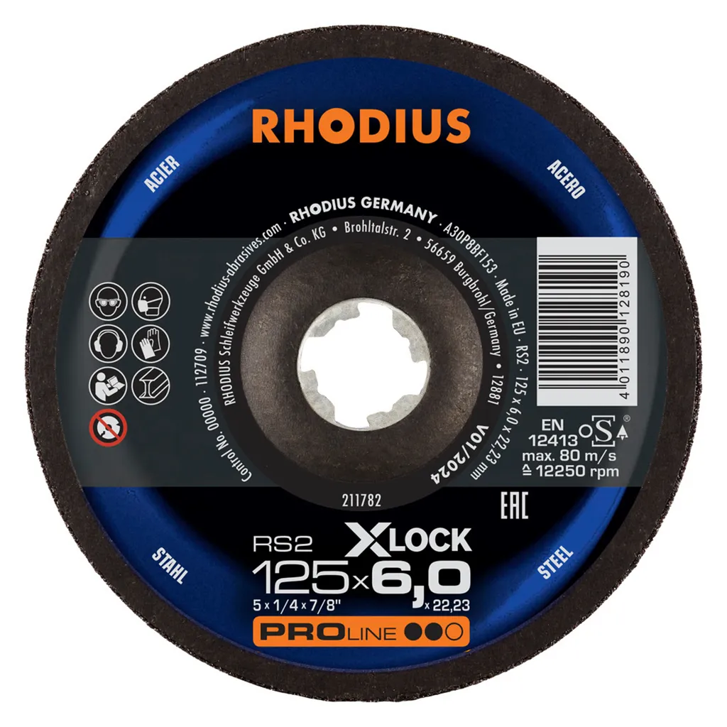 Les meules à ébarber RS2 X-LOCK sont disponibles dans des épaisseurs de 4,0 à 10,0 mm. Les disques X-LOCK de RHODIUS dans les diamètres de 115 et 125 mm ont été conçus pour les meuleuses d’angle de nombreux fabricants. Tous les disques RHODIUS pour X-LOCK sont, en outre, compatibles avec les modèles antérieurs, ce qui signifie qu’ils Elles peuvent également être utilisées sur une meuleuse d’angle traditionnelle avec logement pour alésage de 22,23.