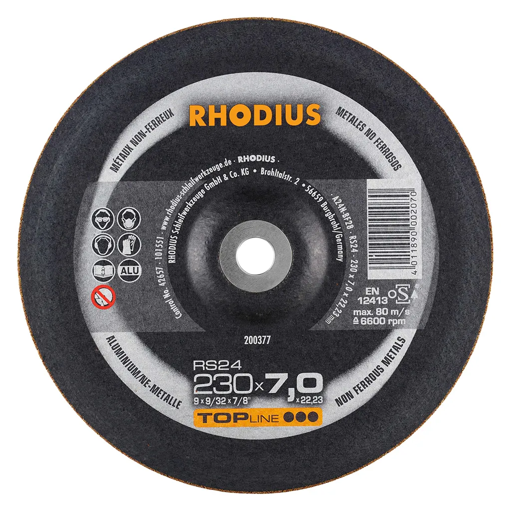 La RHODIUS RS24 a été développée tout spécialement pour le traitement des métaux non-ferreux, tels que l’aluminium, le bronze ou le laiton. La meule à ébarber RS24 convient parfaitement pour le chanfreinage, la préparation et l’égalisation des cordons de soudure, ainsi que pour le cassage des arêtes et l’ébavurage. Elle convient en outre parfaitement pour le surfaçage.