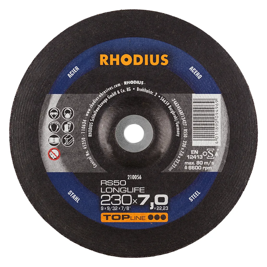Les meules à ébarber RS50 LONGLIE d’une épaisseur de 7,0 mm sont disponibles dans des diamètres de 115 à 230 mm.