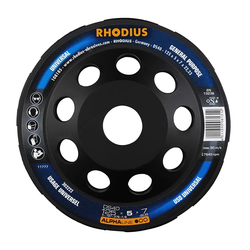 Cet outil a été contrôlé conformément aux normes EN13236 et oSA. Grâce à son diamant industriel de qualité, le DS40 est particulièrement performant. Le plateau de surfaçage diamant est en outre soudé au laser.