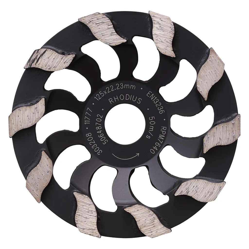 Le positionnement des segments diamant empêche un encrassage rapide de la meule boisseau et permet également une évacuation particulièrement bonne des poussières.
