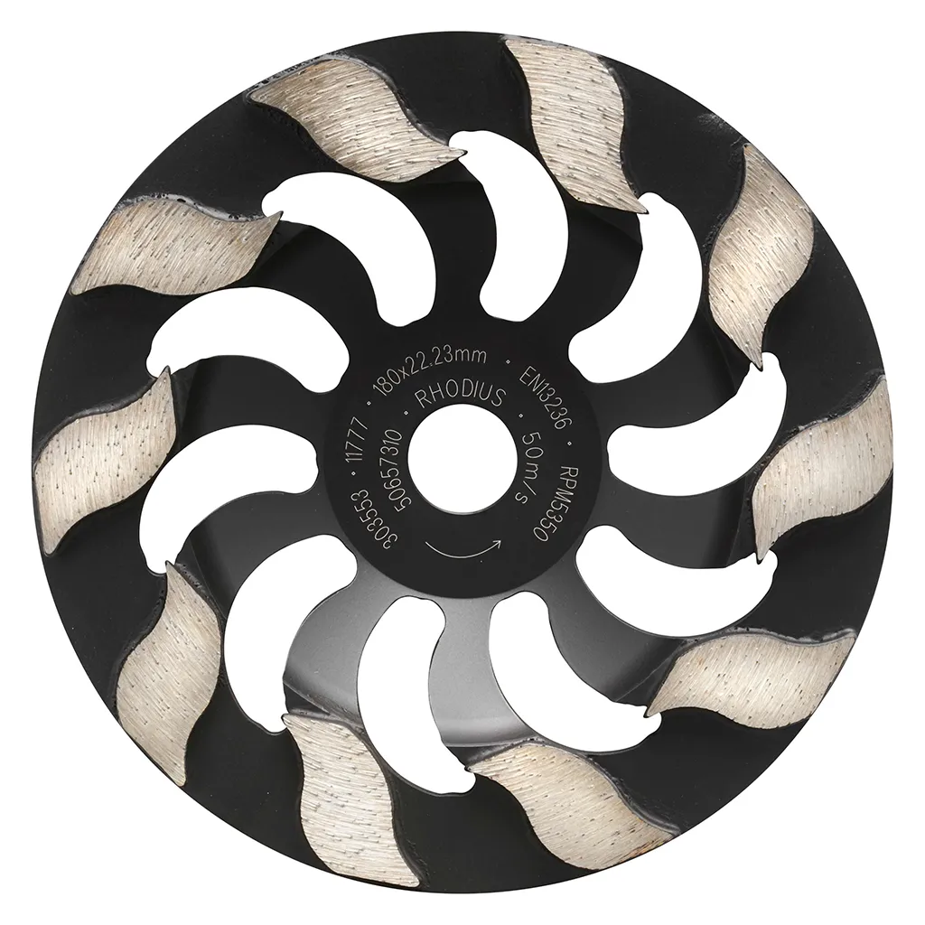 Le positionnement des segments diamant empêche un encrassage rapide de la meule boisseau et permet également une évacuation particulièrement bonne des poussières.