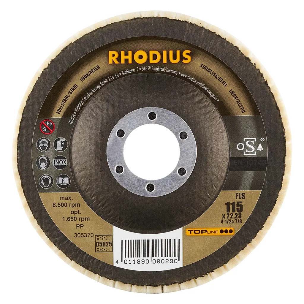 Le feutre de polissage FLS a été spécialement développé pour le traitement de l’acier inoxydable (acier VA, inox), p. ex. 1.4301 (X5CrNi18-10 ou 304), ainsi que de l’acier (acier au carbone, également appelé acier de construction, St37, S235JR, 1.0037 ou acier noir) et de la fonte d’acier, mais aussi de l’aluminium et d’autres métaux non-ferreux, tels que le cuivre, le laiton, le bronze, etc. Avec le FLS de RHODIUS, l’utilisateur obtiendra de très bons résultats sur tous les matériaux indiqués ici.