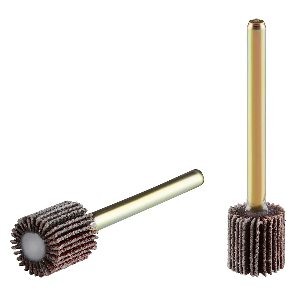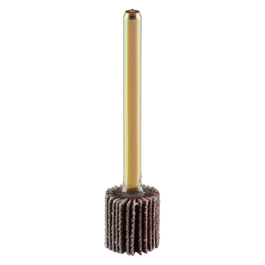 La roue à lamelles FS MINI de RHODIUS a été conçue pour être utilisée sur les meuleuses droites ou les machines à entraînement d’arbre flexible avec logement de tige de 3 mm.