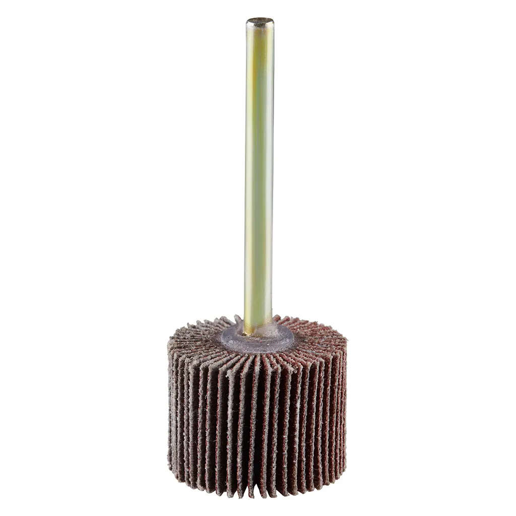 La roue à lamelles FS MINI de RHODIUS a été conçue pour être utilisée sur les meuleuses droites ou les machines à entraînement d’arbre flexible avec logement de tige de 3 mm.
