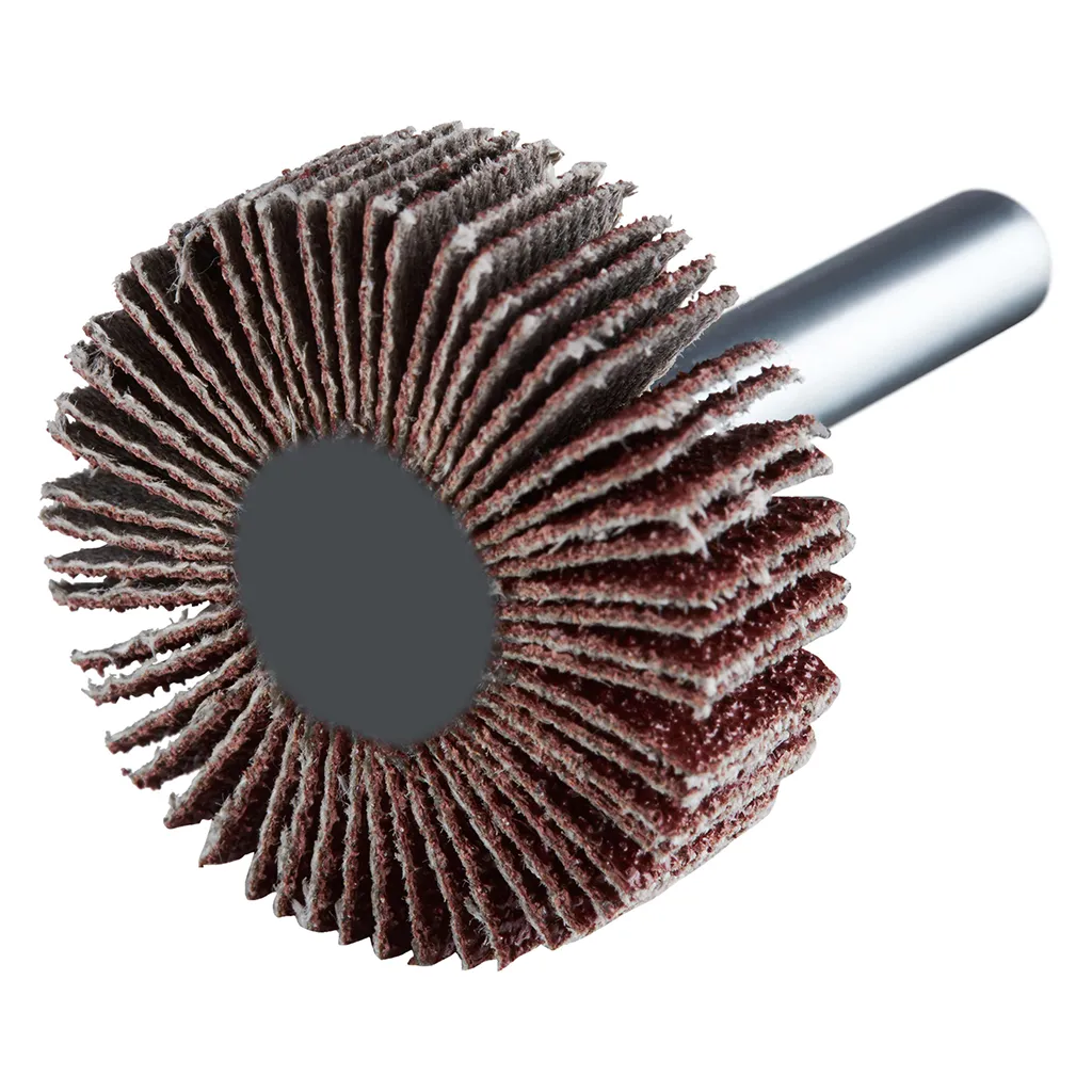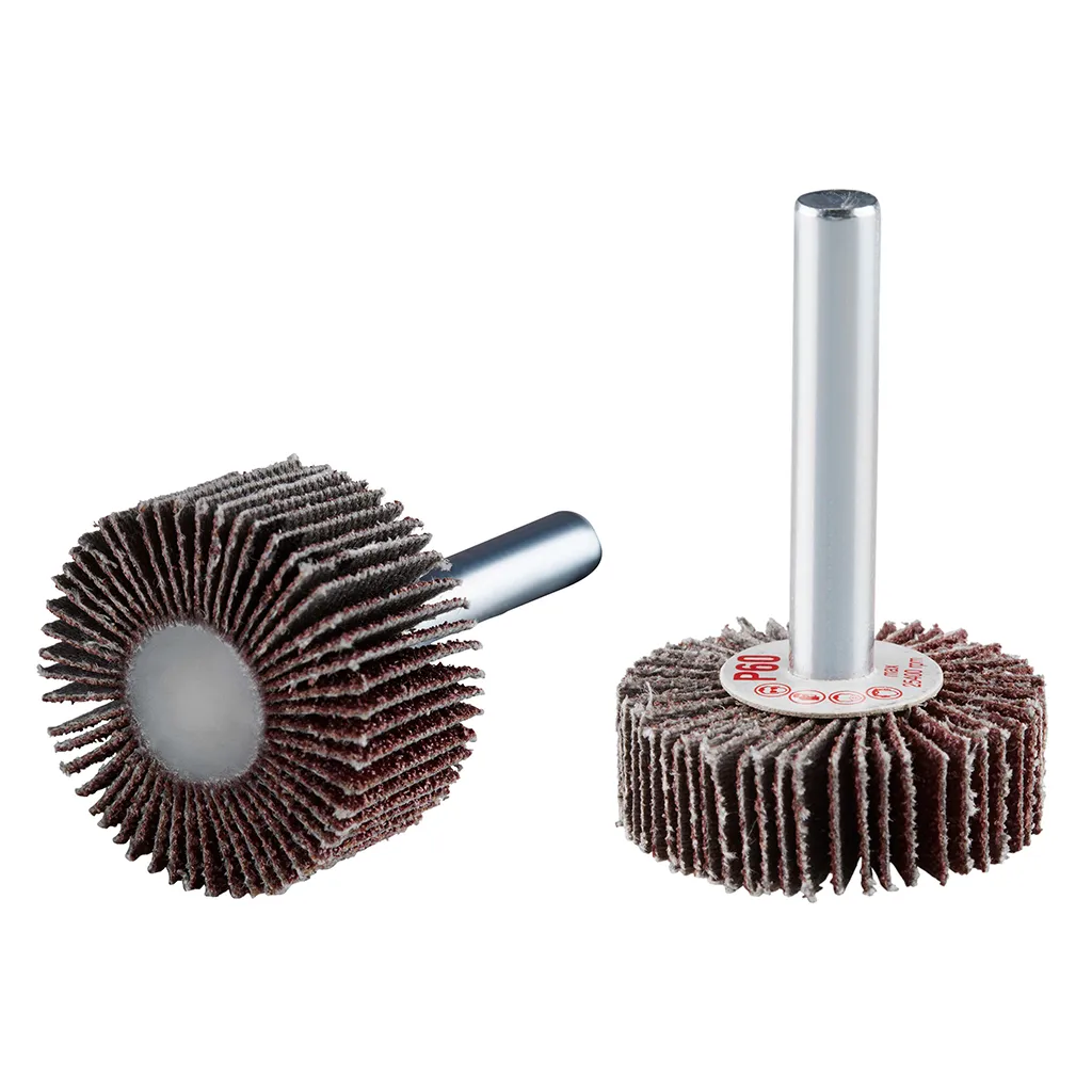 La roue à lamelles FS de RHODIUS a été conçue pour être utilisée sur les meuleuses droites ou les machines à entraînement d’arbre flexible avec logement de tige de 6 mm.