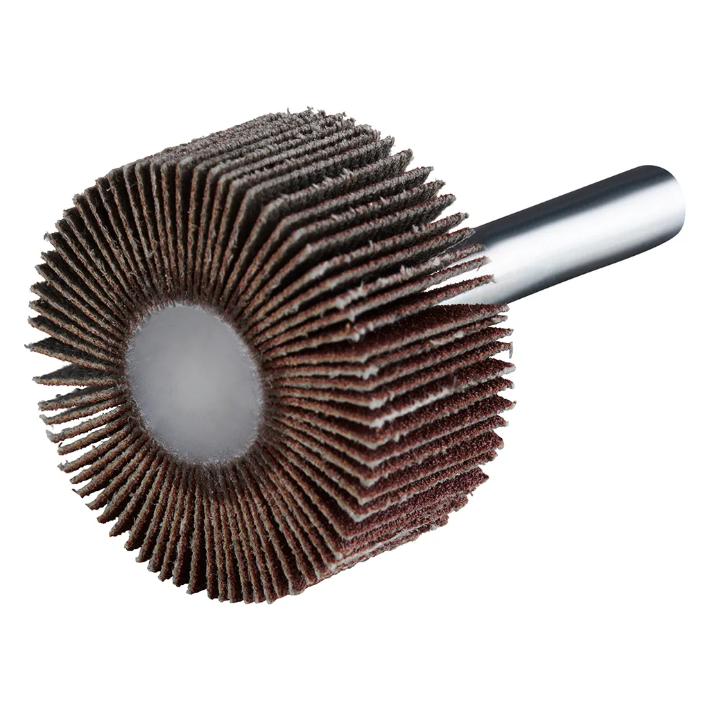 La roue à lamelles FS de RHODIUS a été conçue pour être utilisée sur les meuleuses droites ou les machines à entraînement d’arbre flexible avec logement de tige de 6 mm.