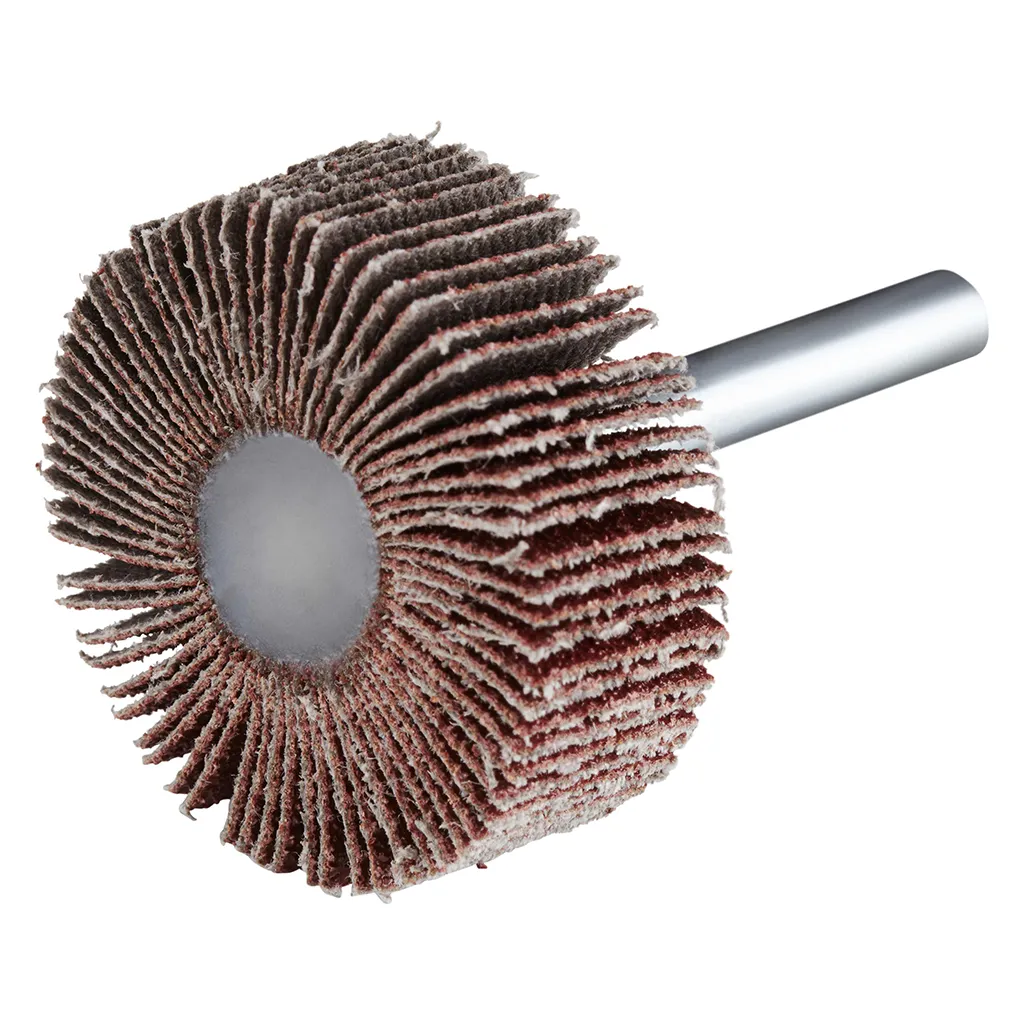 La roue à lamelles FS de RHODIUS a été conçue pour être utilisée sur les meuleuses droites ou les machines à entraînement d’arbre flexible avec logement de tige de 6 mm.