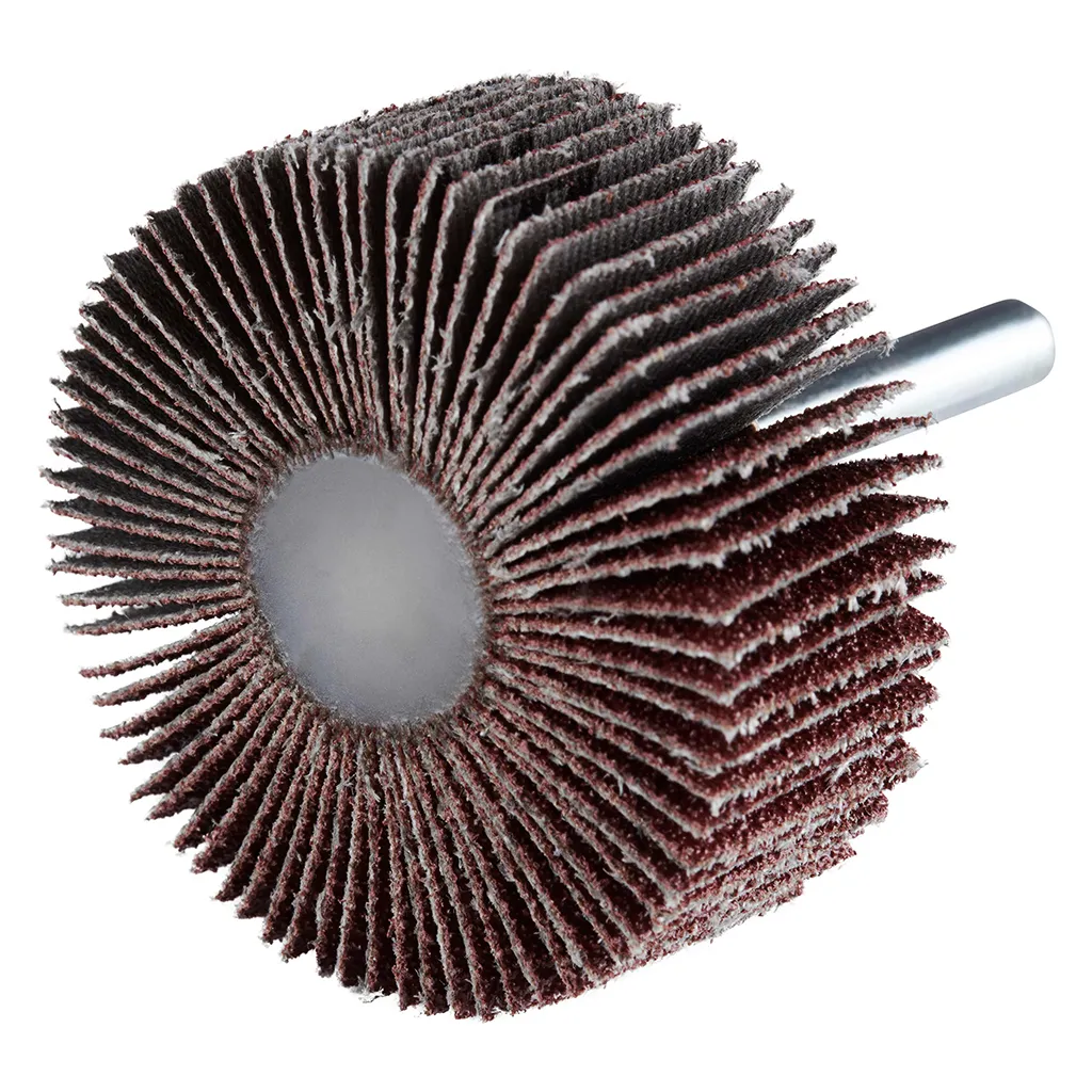 La roue à lamelles FS de RHODIUS a été conçue pour être utilisée sur les meuleuses droites ou les machines à entraînement d’arbre flexible avec logement de tige de 6 mm.