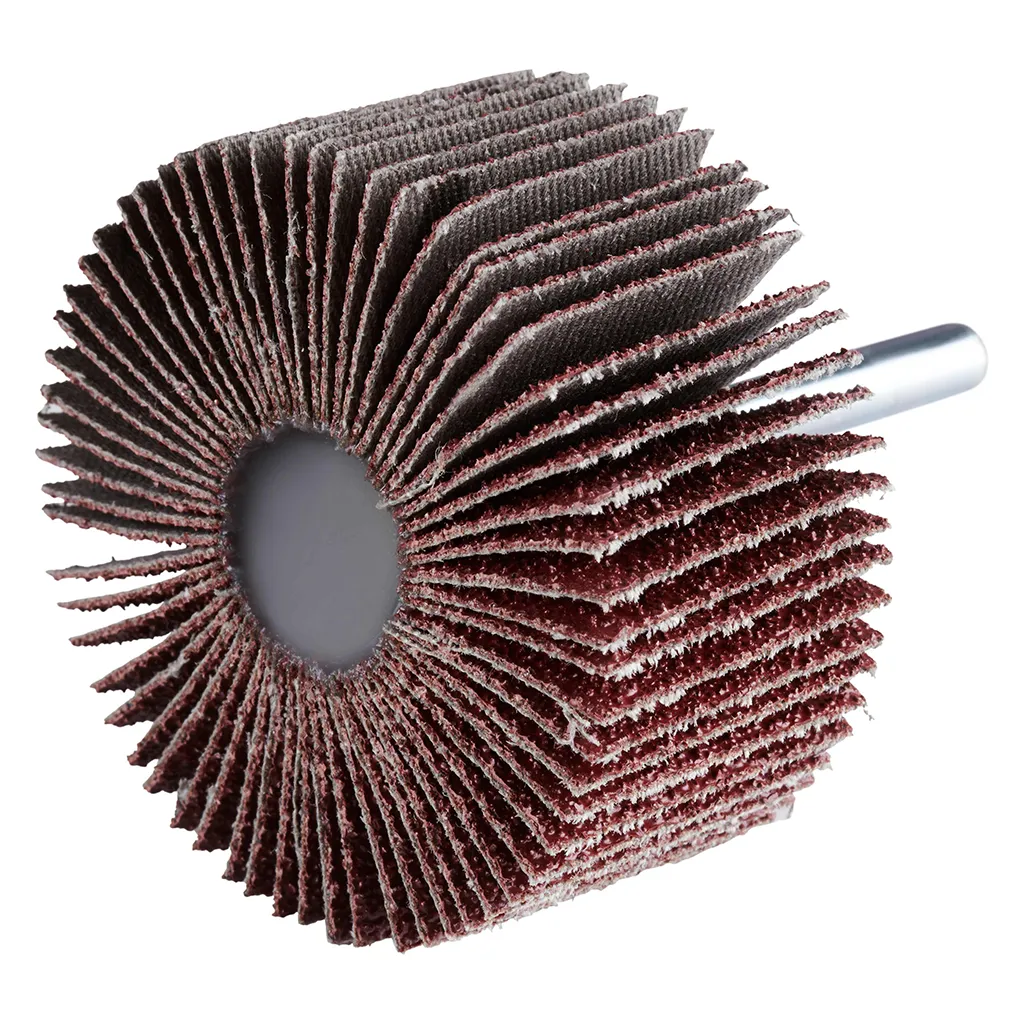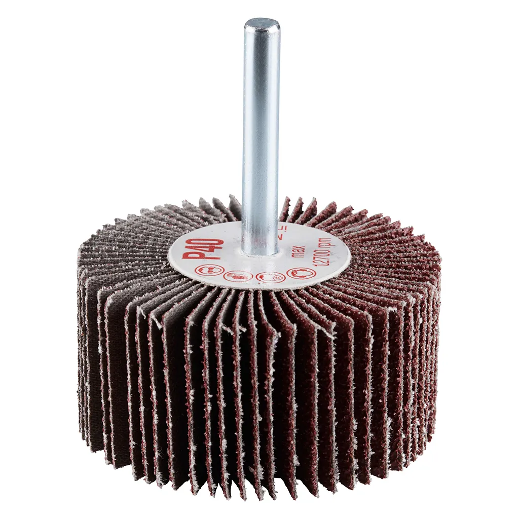 La roue à lamelles FS de RHODIUS a été conçue pour être utilisée sur les meuleuses droites ou les machines à entraînement d’arbre flexible avec logement de tige de 6 mm.