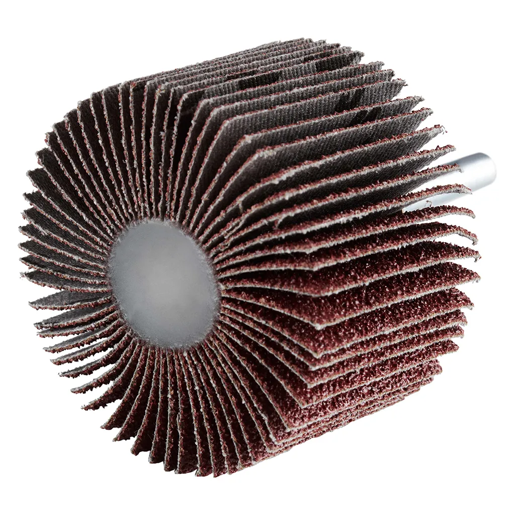 La roue à lamelles FS de RHODIUS a été conçue pour être utilisée sur les meuleuses droites ou les machines à entraînement d’arbre flexible avec logement de tige de 6 mm.