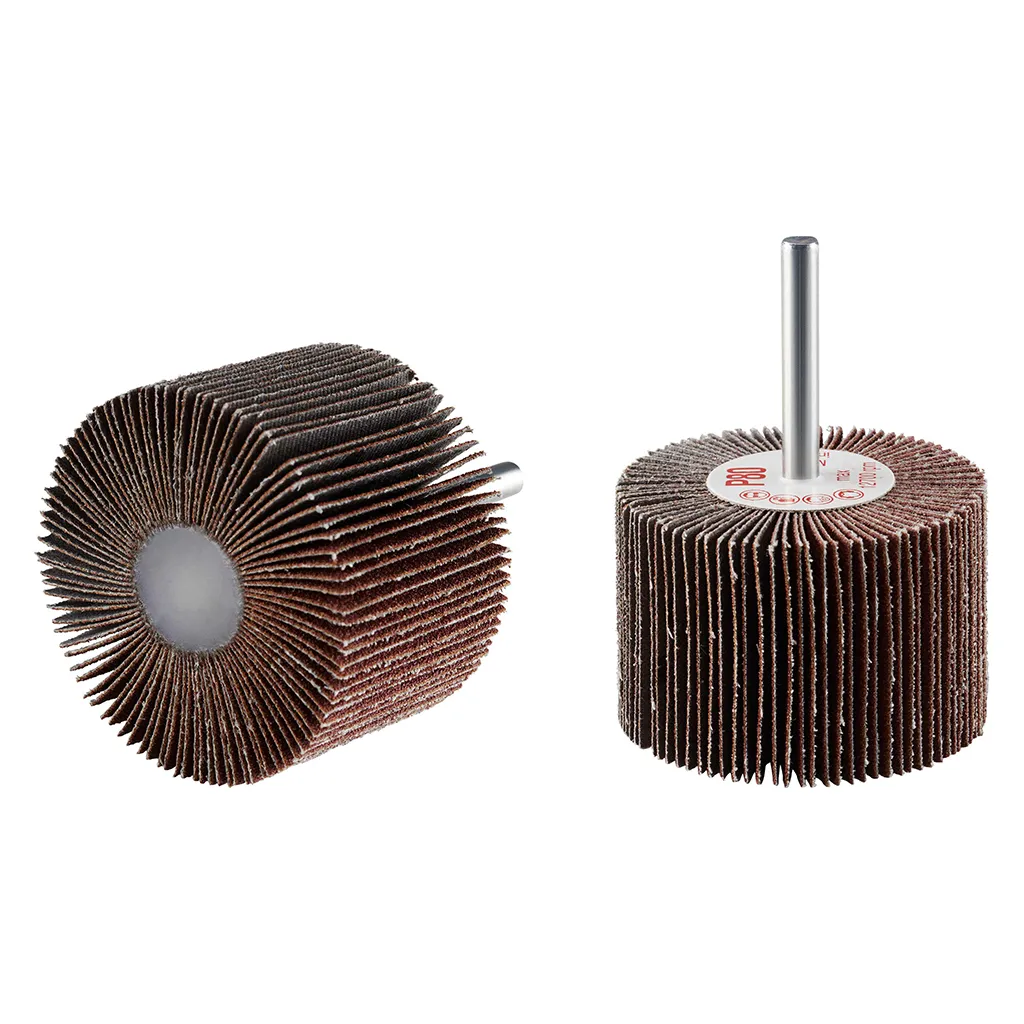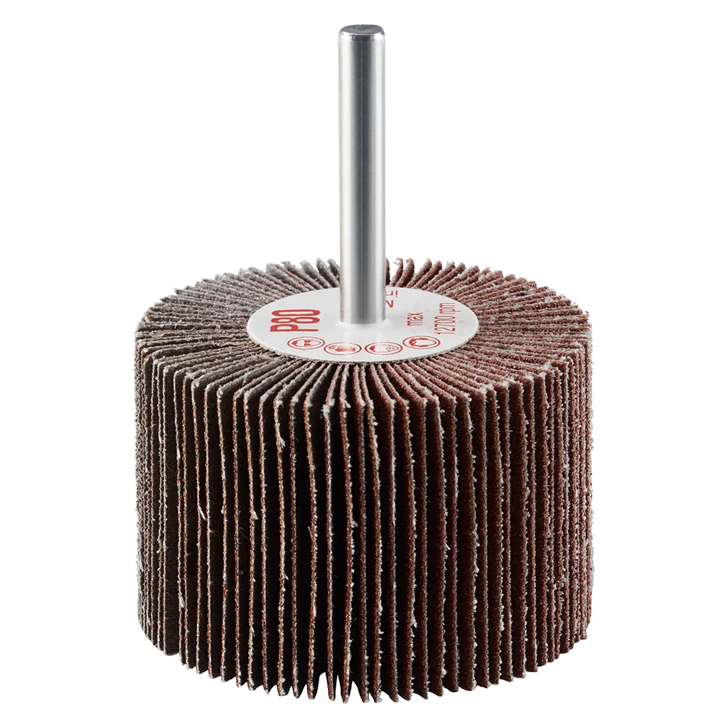 La roue à lamelles FS de RHODIUS a été conçue pour être utilisée sur les meuleuses droites ou les machines à entraînement d’arbre flexible avec logement de tige de 6 mm.