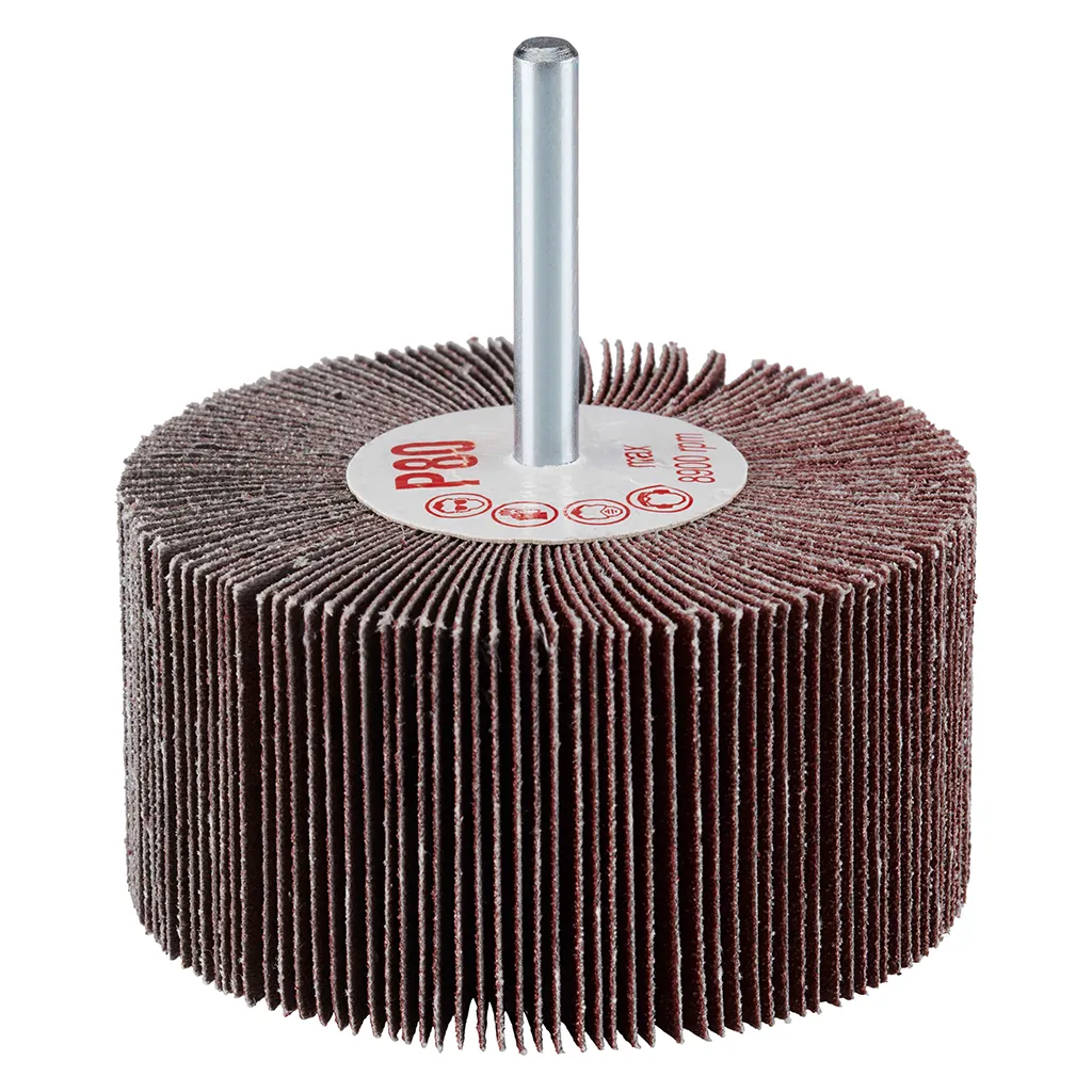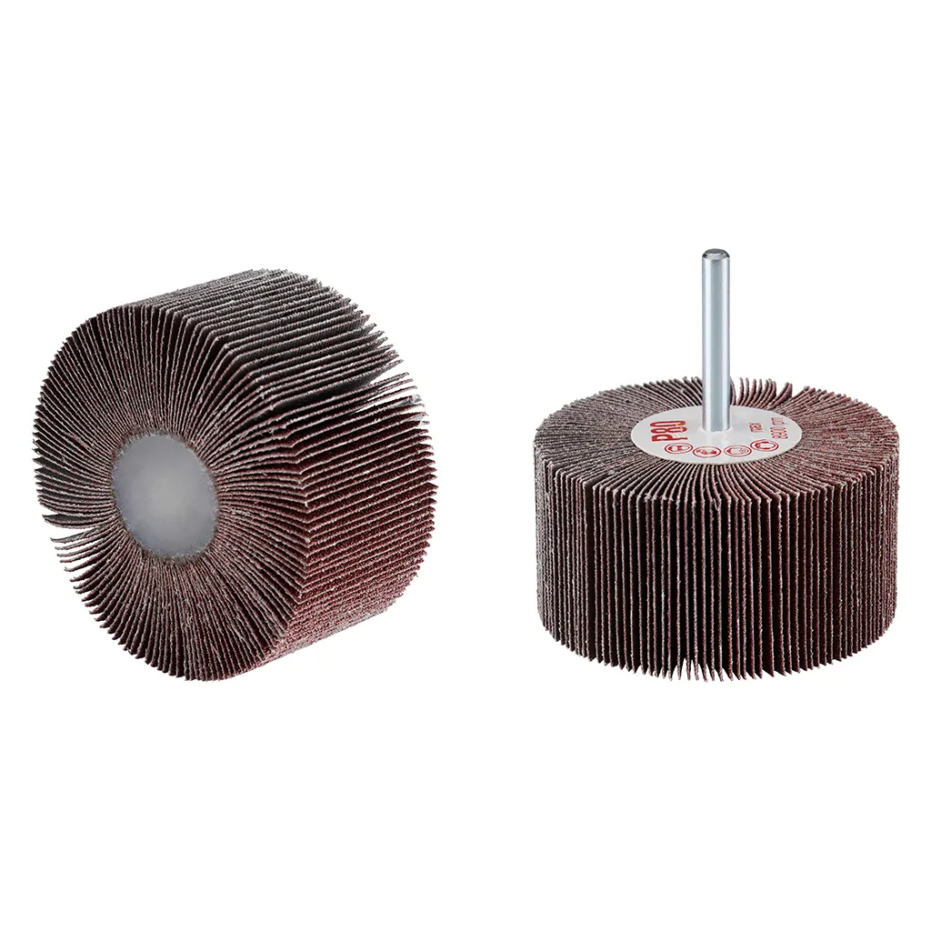 La roue à lamelles FS de RHODIUS a été conçue pour être utilisée sur les meuleuses droites ou les machines à entraînement d’arbre flexible avec logement de tige de 6 mm.