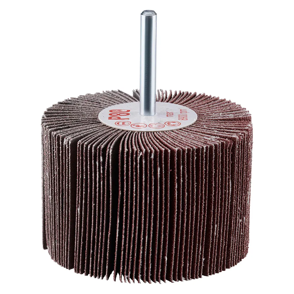 La roue à lamelles FS de RHODIUS a été conçue pour être utilisée sur les meuleuses droites ou les machines à entraînement d’arbre flexible avec logement de tige de 6 mm.