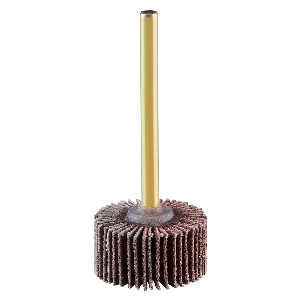 La roue à lamelles FS MINI de RHODIUS a été conçue pour être utilisée sur les meuleuses droites ou les machines à entraînement d’arbre flexible avec logement de tige de 3 mm.
