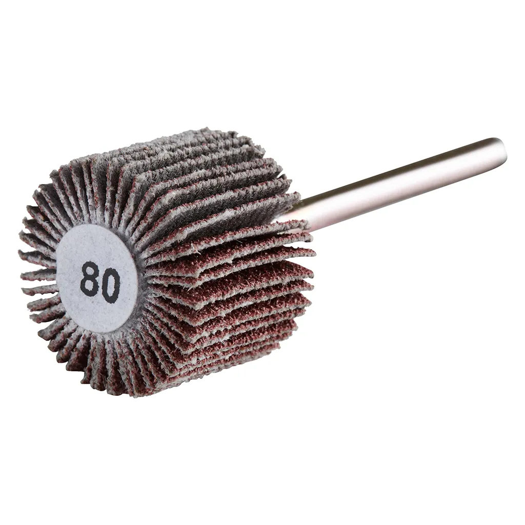 La roue à lamelles FS MINI de RHODIUS a été conçue pour être utilisée sur les meuleuses droites ou les machines à entraînement d’arbre flexible avec logement de tige de 3 mm.