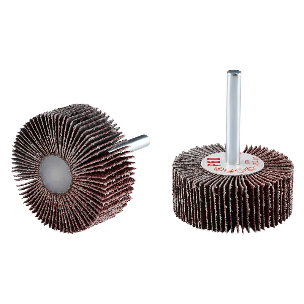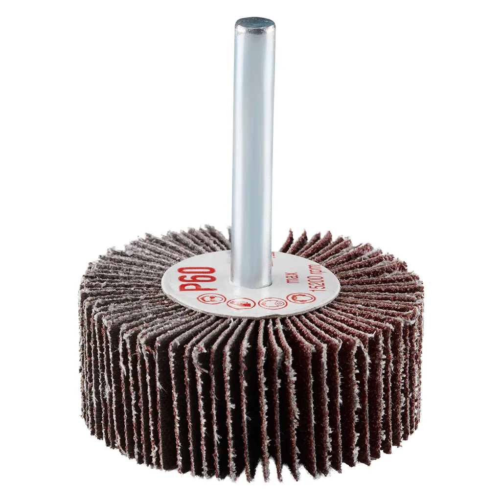 La roue à lamelles FS de RHODIUS a été conçue pour être utilisée sur les meuleuses droites ou les machines à entraînement d’arbre flexible avec logement de tige de 6 mm.