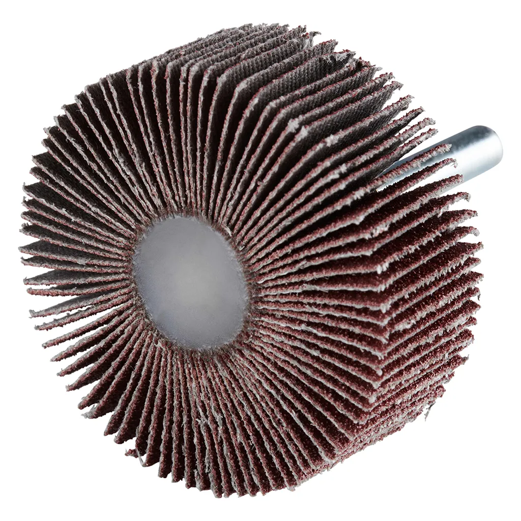 La roue à lamelles FS de RHODIUS a été conçue pour être utilisée sur les meuleuses droites ou les machines à entraînement d’arbre flexible avec logement de tige de 6 mm.