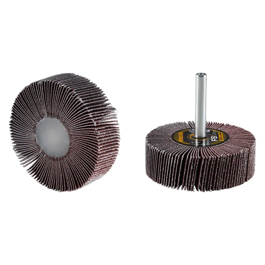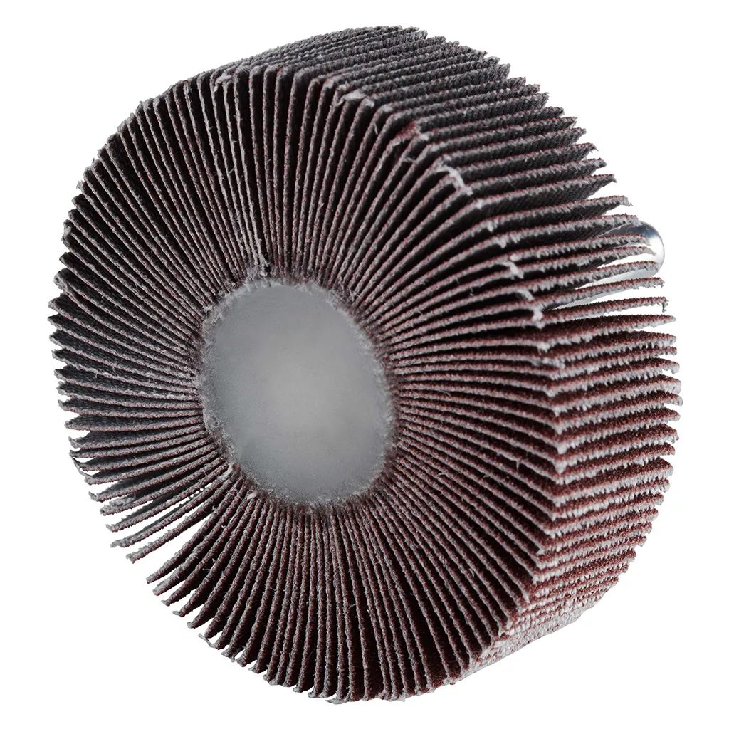 La roue à lamelles FS de RHODIUS a été conçue pour être utilisée sur les meuleuses droites ou les machines à entraînement d’arbre flexible avec logement de tige de 6 mm.