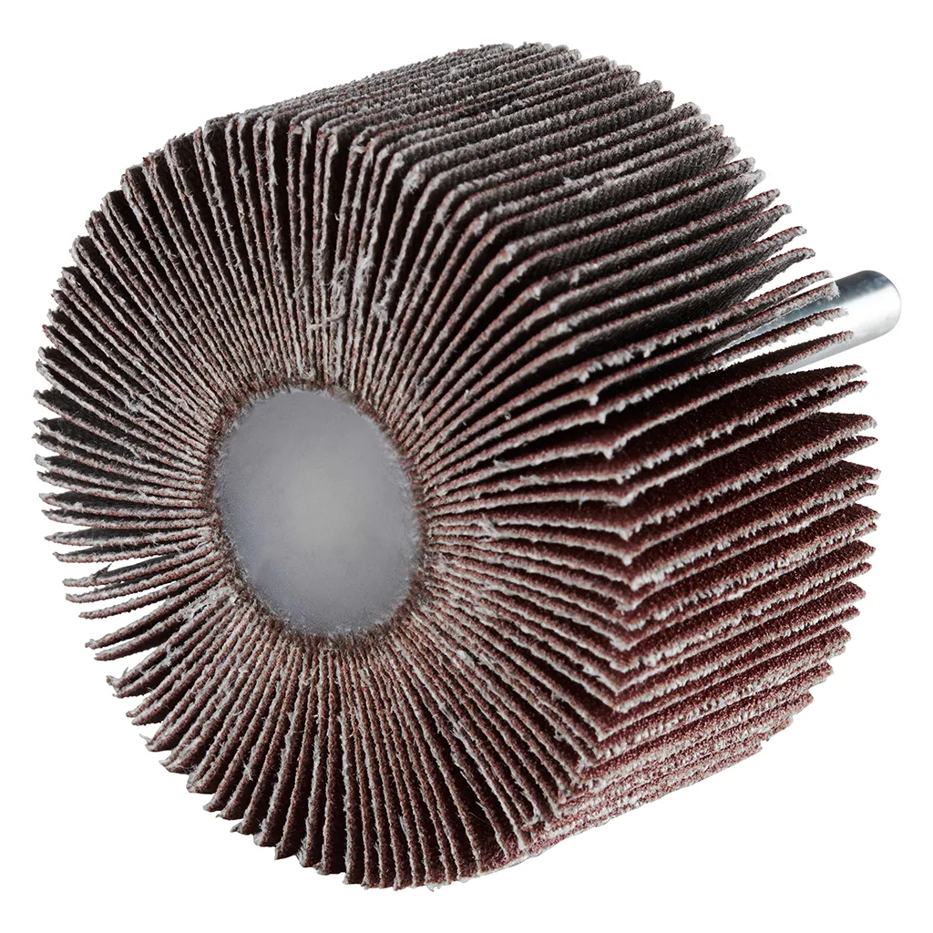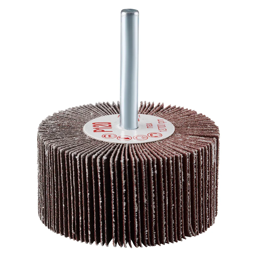 La roue à lamelles FS de RHODIUS a été conçue pour être utilisée sur les meuleuses droites ou les machines à entraînement d’arbre flexible avec logement de tige de 6 mm.