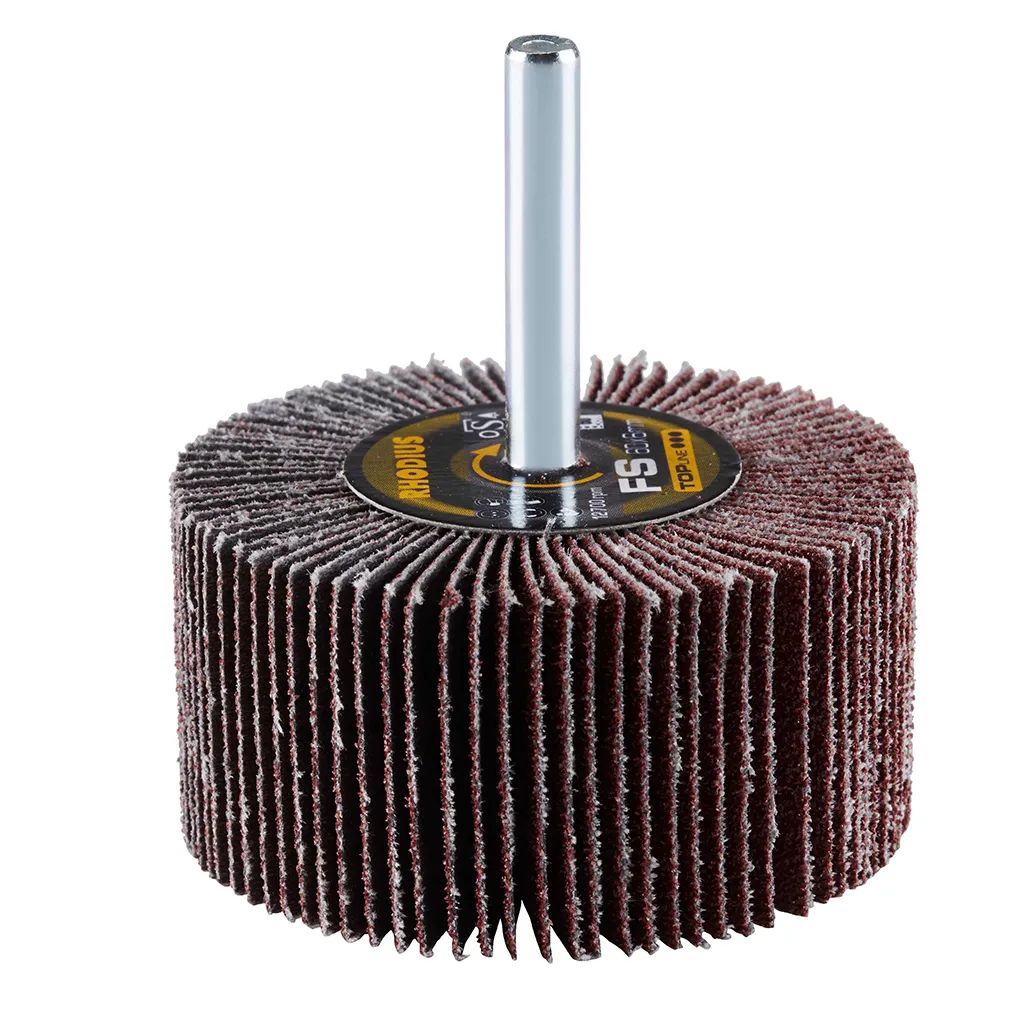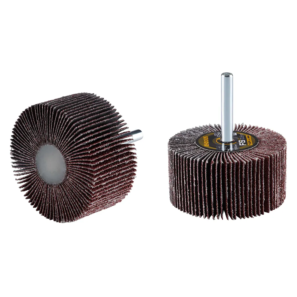 La roue à lamelles FS de RHODIUS a été conçue pour être utilisée sur les meuleuses droites ou les machines à entraînement d’arbre flexible avec logement de tige de 6 mm.