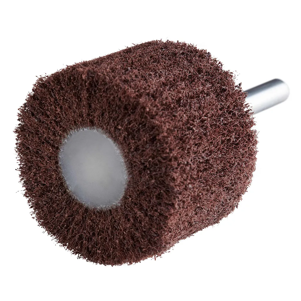 La roue à lamelles en non-tissé VS de RHODIUS a été conçue pour être utilisée sur les meuleuses droites ou les machines à entraînement d’arbre flexible et logement de 6 mm.
