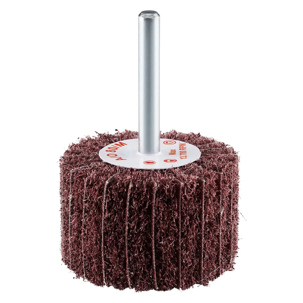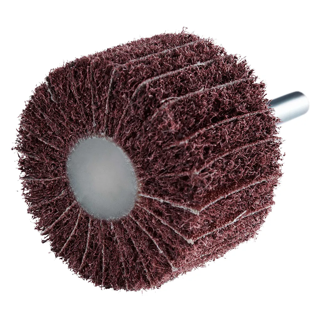 La roue à lamelles en non-tissé VSK de RHODIUS a été conçue pour être utilisée sur les meuleuses droites ou les machines à entraînement d’arbre flexible et logement de 6 mm